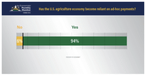 “But economists overwhelmingly agree on two key risks: 1. U.S. agriculture has become too reliant on ad hoc payments. A striking 94% say the industry has become ‘too addicted’ to emergency programs. And it’s not just farmers, but also industry and input suppliers who have become reliant upon these payments. Many economists say repeated aid packages distort land values, cash rents, equipment purchases and overall decision-making,” Morgan reported. “2. One hundred percent of economists argue tariff-aid payments will keep fertilizer prices high. Every economist surveyed says tariff aid would keep input prices elevated, particularly fertilizer.”