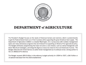 Summary of President Donald Trump’s budget proposal for the USDA in FY 2027. Courtesy of the White House.